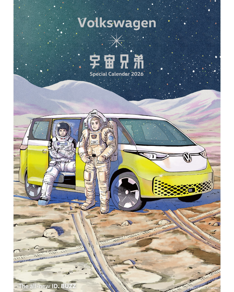 新しい年の暮らしに、彩りを添えるカレンダー。VWオリジナルの2026カレンダーは、またとない特別版。国民的な人気漫画の『宇宙兄弟』とコラボレーションしました。話題の新型ID. Buzzなど多彩なモデルが宇宙兄弟の世界に登場し、魅力的な登場人物たちと共演します。今だけ2,000名様に抽選でプレゼント。ここでしか手に入らない貴重なカレンダーと、夢が広がる一年を共に過ごしてみませんか?